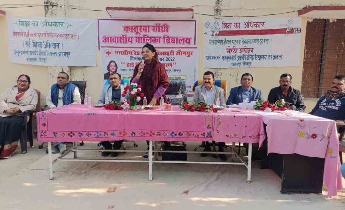 करंजाकला ब्लाक के कस्तूरबा गांधी आवासीय बालिका विद्यालय के परिसर में भारतीय रेडक्रास सोसायटी की जौनपुर शाखा की तरफ से कार्यक्रम आयोजित कर सौ छात्राओं के बीच हाइजिन किट वितरित कर स्वच्छता एवं स्वास्थ के प्रति जागरूक किया गया।कार्यक्रम की मुख्य अतिथि आकांक्षा समिति की अध्यक्ष डा. अंकिता राज ने छात्राओं को संबोधित करते हुए कहा कि शुद्ध जल, स्वस्थ भोजन, एवं नियमित व्यायाम कर मन मस्तिष्क को स्वस्थ रखा जा सकता है।