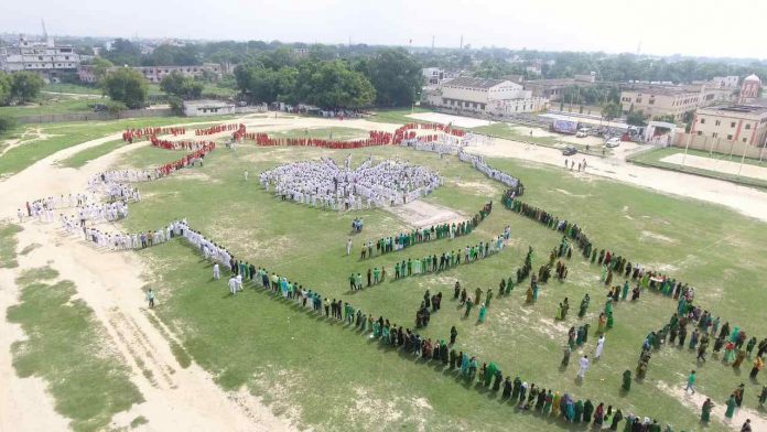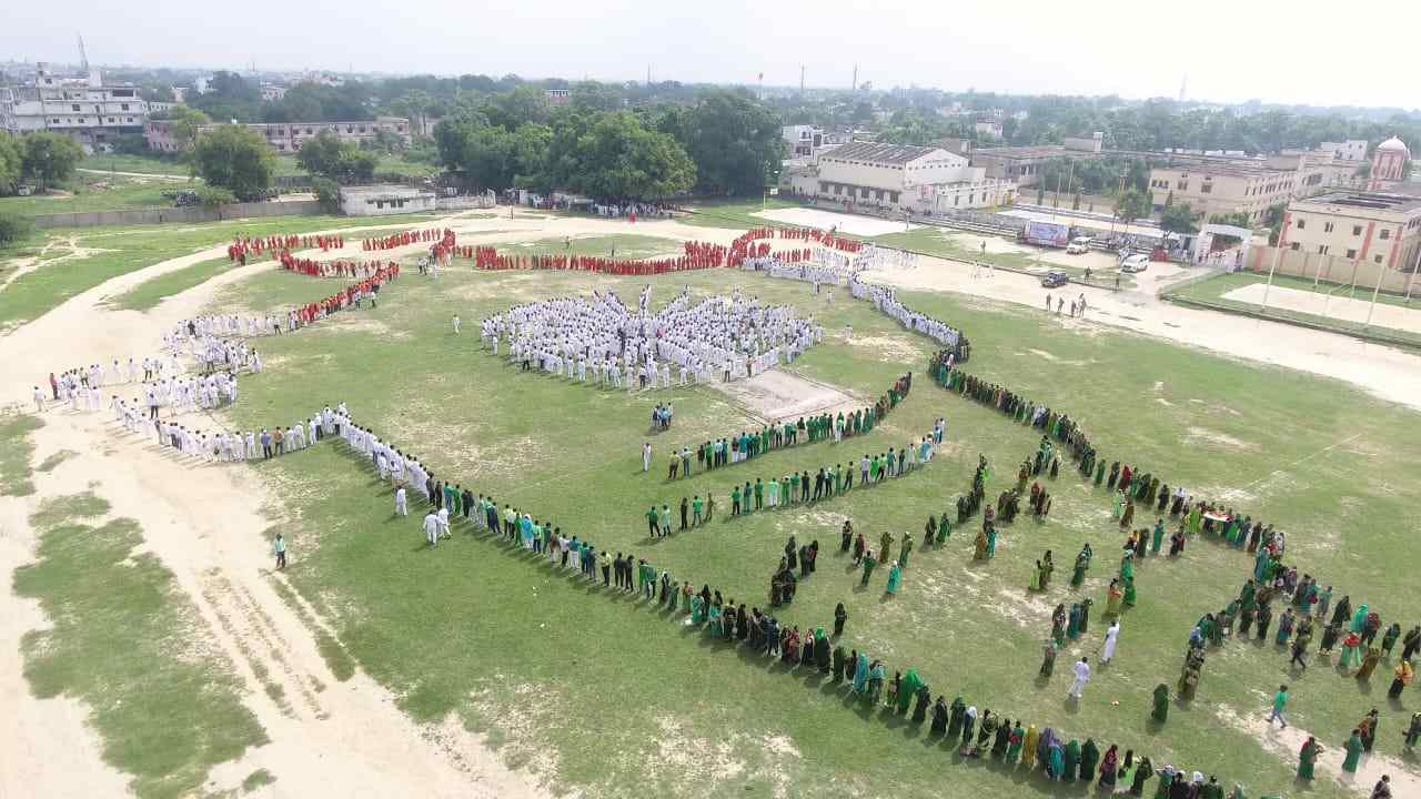 हर घर तिरंगा के तहत शिक्षकों ने बनाया मानव श्रृंखला से भारत का मानचित्र