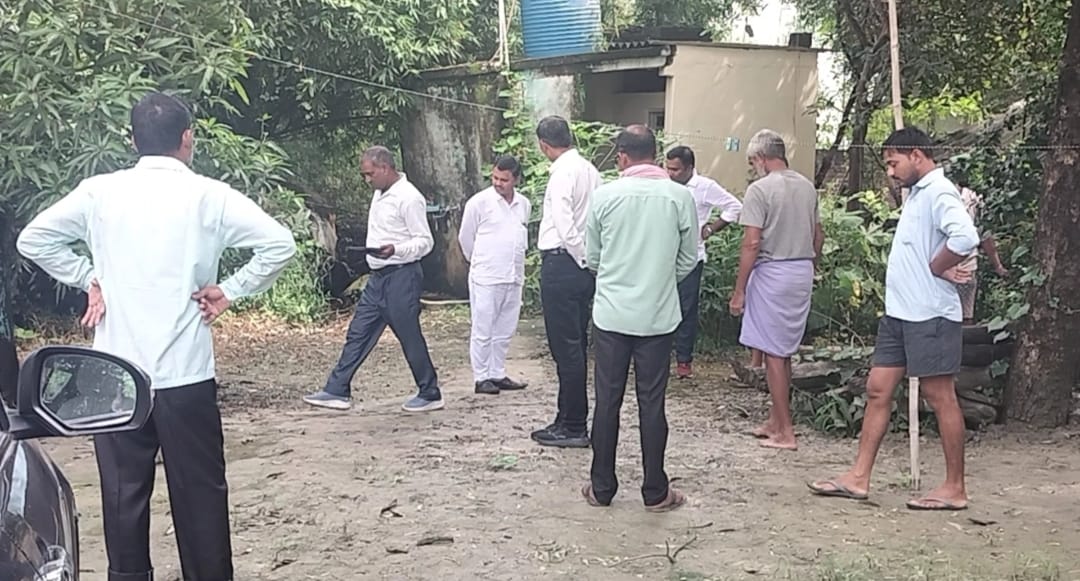 हाईकोर्ट के आदेश पर राजस्व टीम ने की तालाब खाते के जमीन की पैमाइश