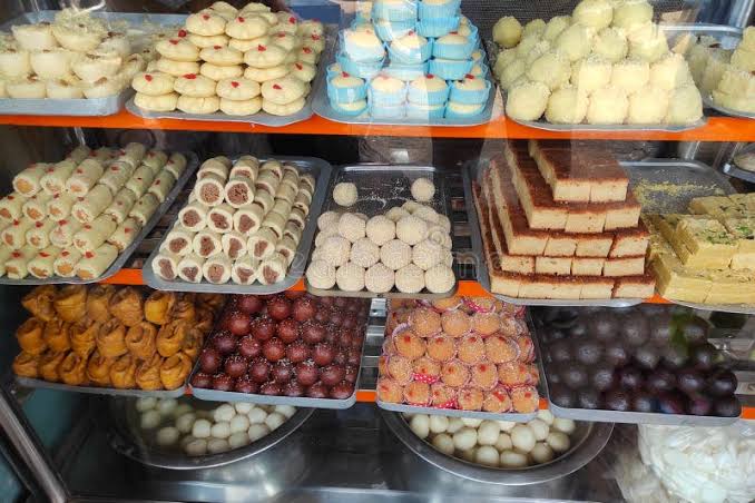 # रेडीमेंट मिठाइयां बेचने की रहती है होड़