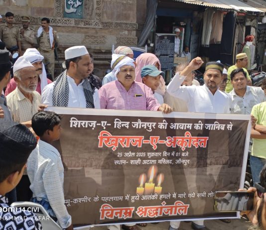 शाही अटाला मस्जिद के बाहर नमाजियों ने शहीदों को दी श्रद्धांजलि