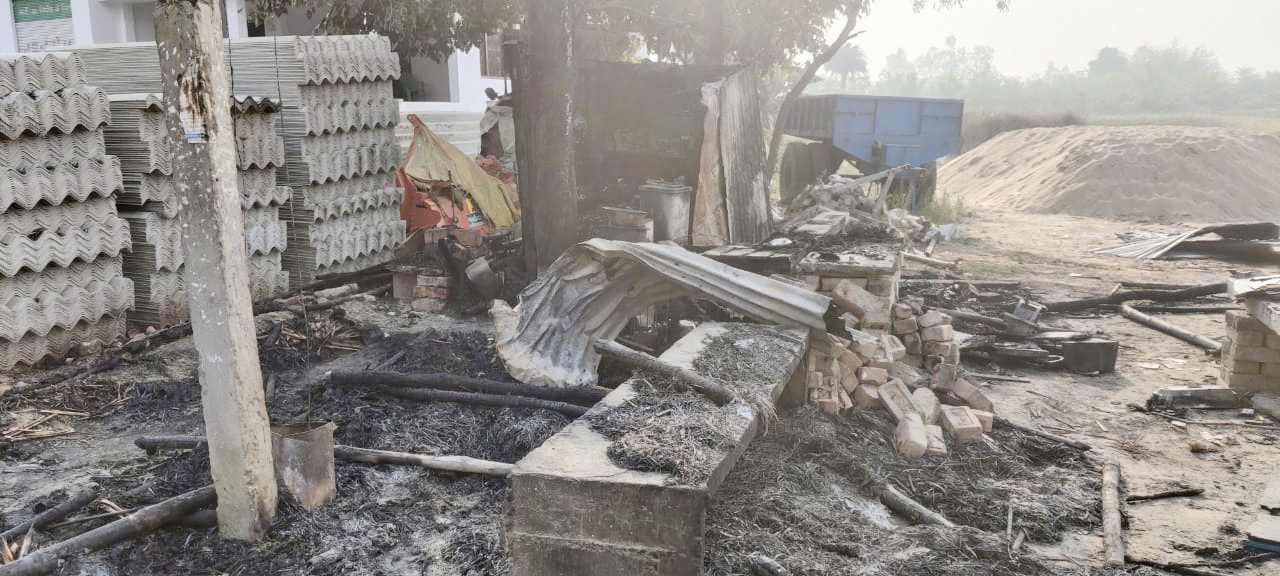 छप्पर युक्त गुमटी में लगी आग,सब कुछ जलकर खाक