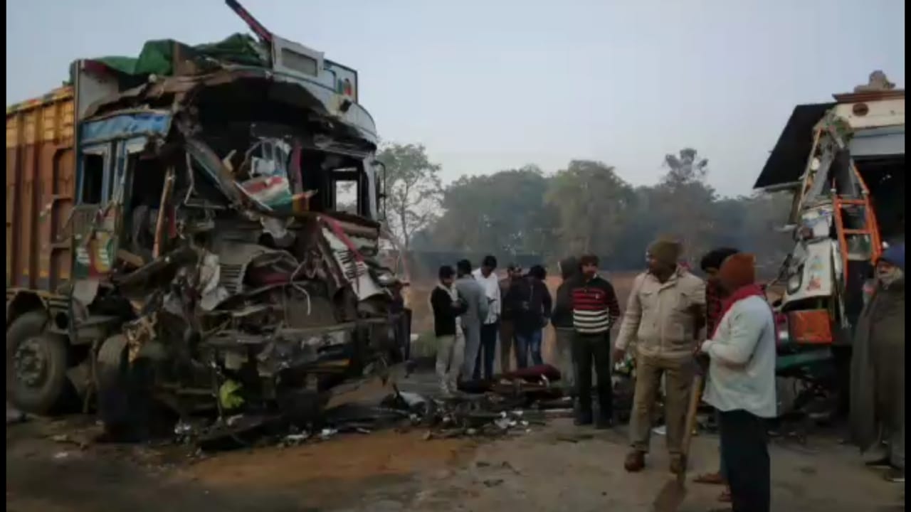 जौनपुर : आमने-सामने से आ रही ट्रकों की टक्कर में दोनों...