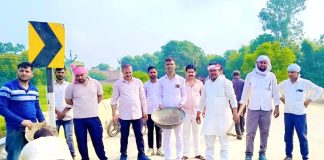 कांग्रेसियों ने पुल में आई दरार को भरा, जांच की मांग