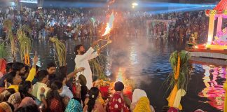 अस्ताचलगामी सूर्य को अर्घ्य देने उमड़ा जनसैलाब