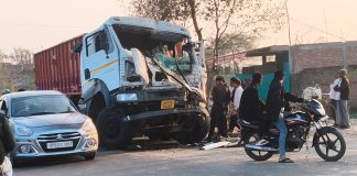 खड़े डम्फर में ट्रेलर ने मारी टक्कर, बाल-बाल बचा चालक
