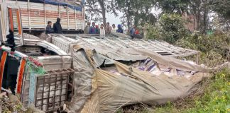 मंज़िल से चंद मीटर पहले पलटी दाल लदी डीसीएम