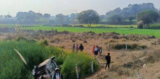 नीलगाय को बचाने में कार पलटी, चार घायल, मासूम सुरक्षित