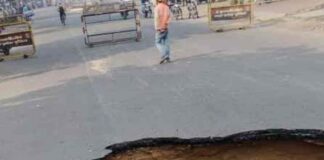 लखनऊ : पॉश इलाके विकास नगर में सड़क धंसी, हुआ 20...