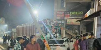 अनियंत्रित ट्रक विद्युत पोल व कार से टकराकर मकान में घुसी